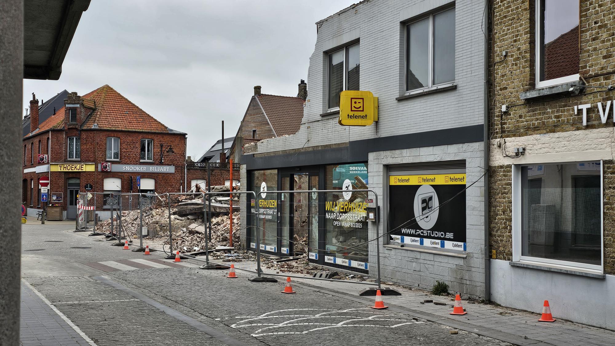 Op de straathoek tegenover mijn kantoor situeert zich momenteel een behoorlijk grote bouwwerf. Waar ooit een ruime winkel, een café, een dancing en een verzekeringskantoor waren, worden nu nieuwe winkels en appartementen opgetrokken. Ondergronds komen garages. Een enorme put werd hiertoe uitgegraven. Al bij een lichte westenwind waait fijn zand eruit richting mijn kantoor.